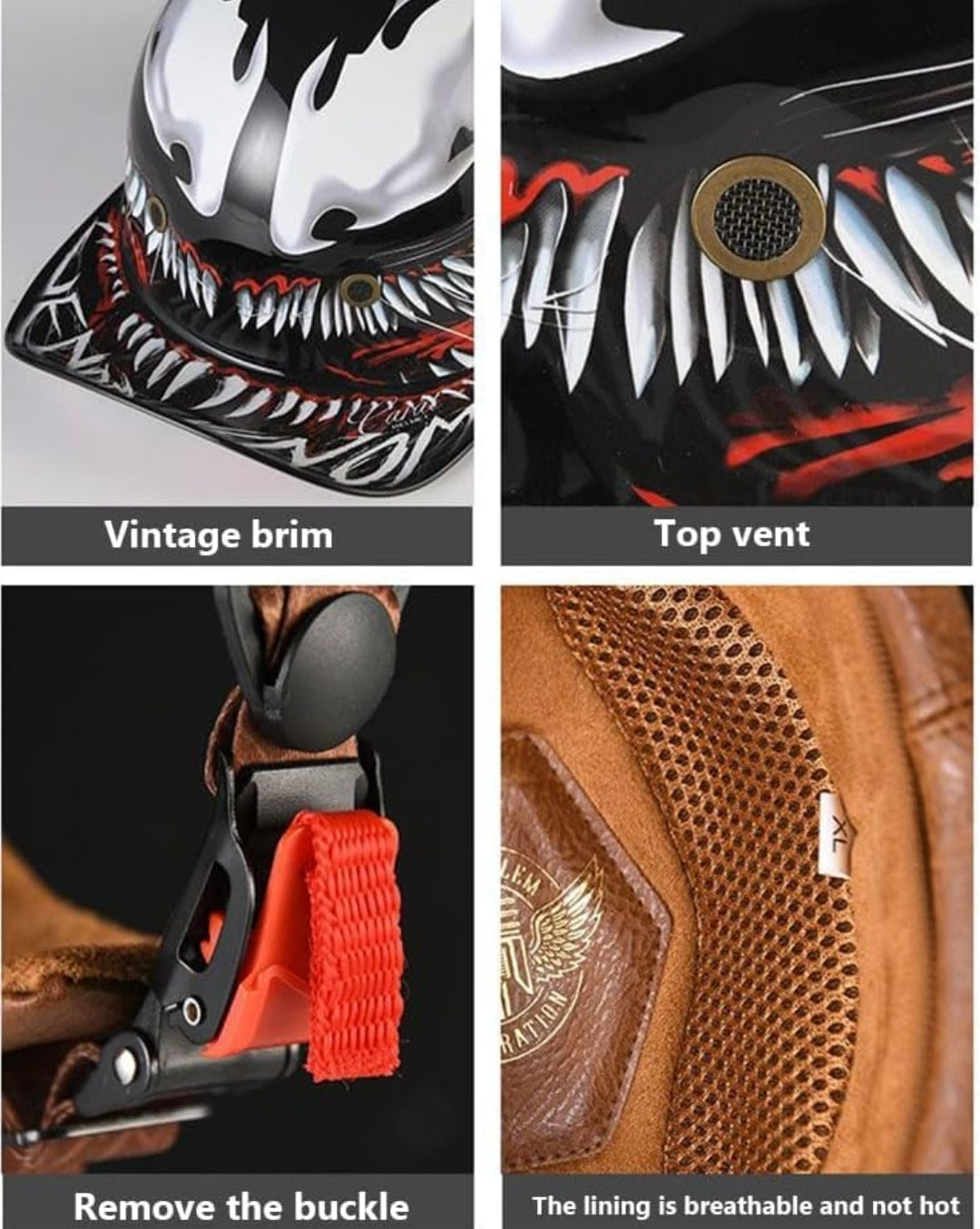Novelty fashion HALF HELMET DESIGN - The helmet has a fashion Retro half-helmet design reminiscent of early riding helmets. Coming in matte black or glossy black/silver gray various fashion patterns, this helmet will look sleek with any Scooter/ATV/motorcycle /UTV/Street Bike/Touring/Snowmobile/Personal Watercraft/balance cars.