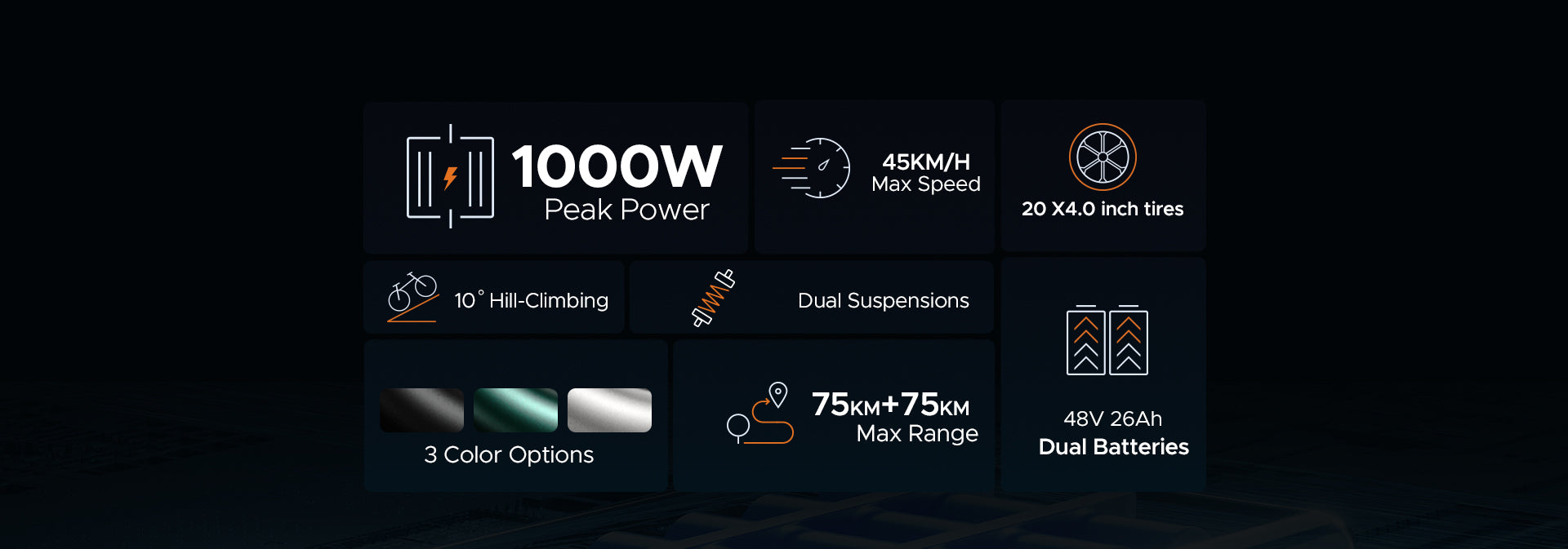 - Max Mileage: 34.17 Miles (55KM) at Electric Mode 1 and 46.6 Miles (75KM) at PAS mode 1