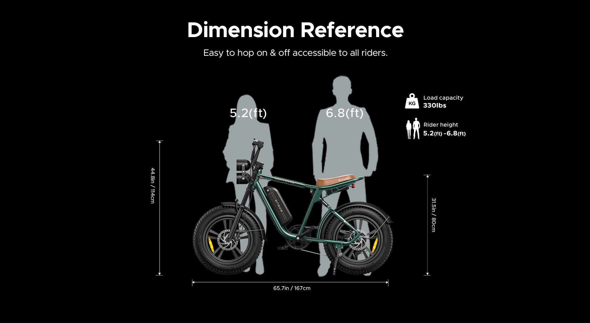 - Rider Height: 5.0 (ft) -6.8 (ft)