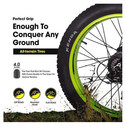 Pro x-12 Tires 26 Inch Electric Bike is a versatile electric bike that can ride on snow, mountain or beach.