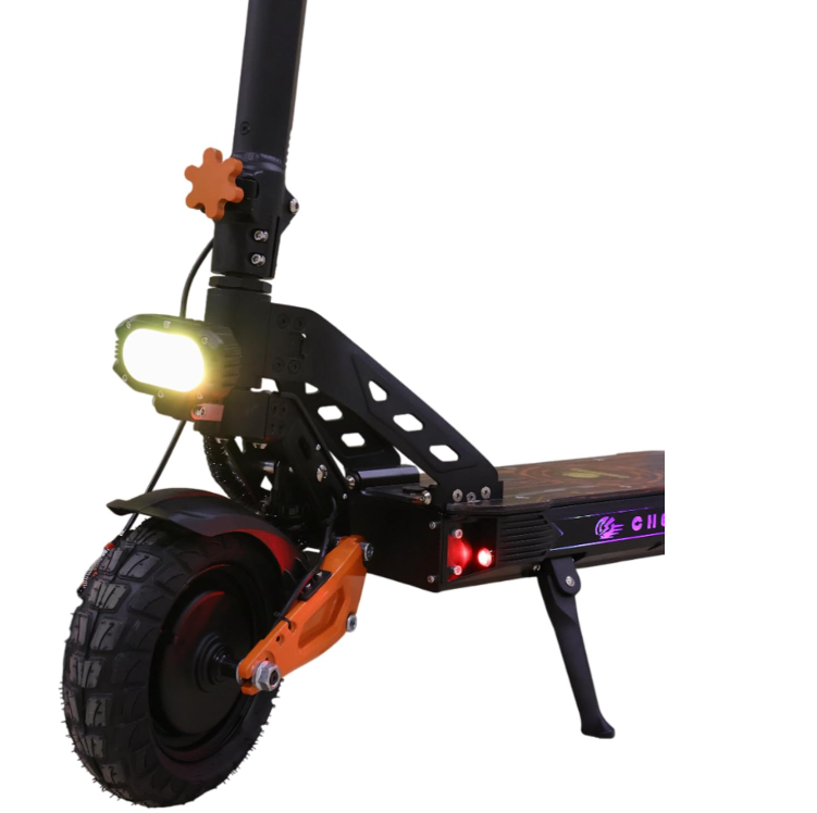 Experience smooth, stylish, and powerful rides with the CHENXIAN C3 Kick Scooter. Built with 25.4 cm tubeless tyres, dual disc brakes, and front-rear suspension for maximum comfort and safety. Its sleek black-orange design and foldable frame make it perfect for commuting or leisure — durable, elegant, and easy to carry.