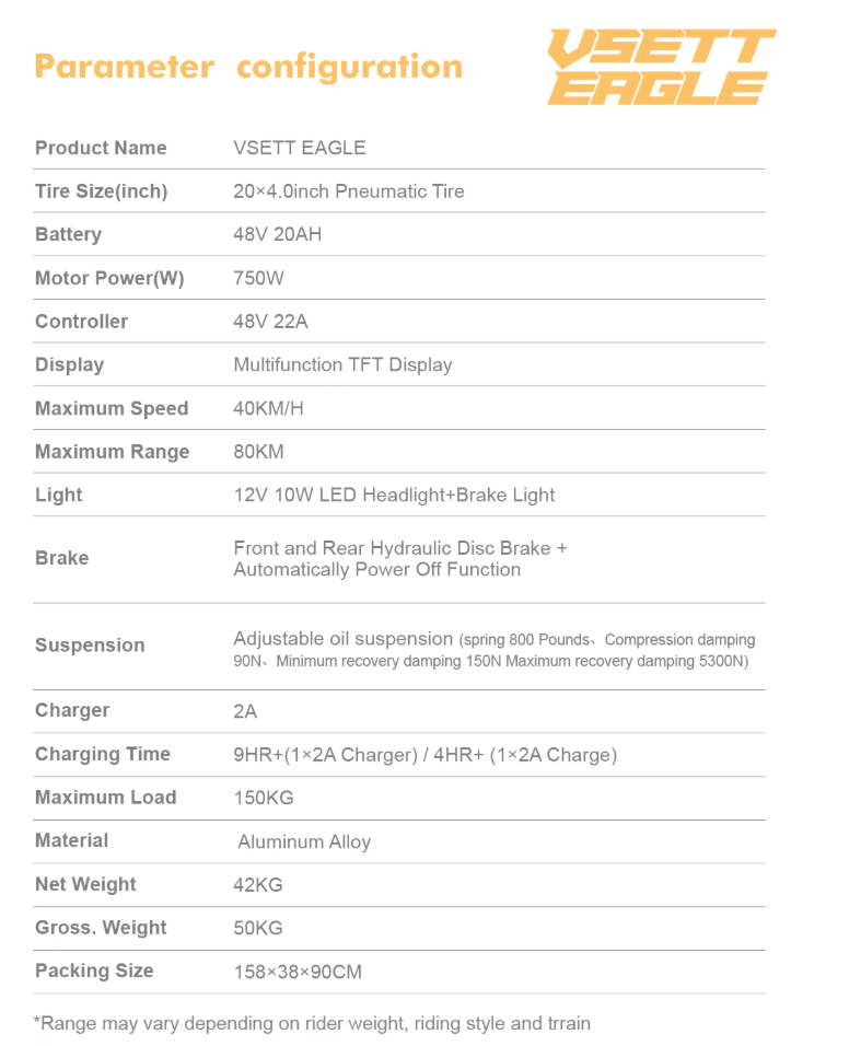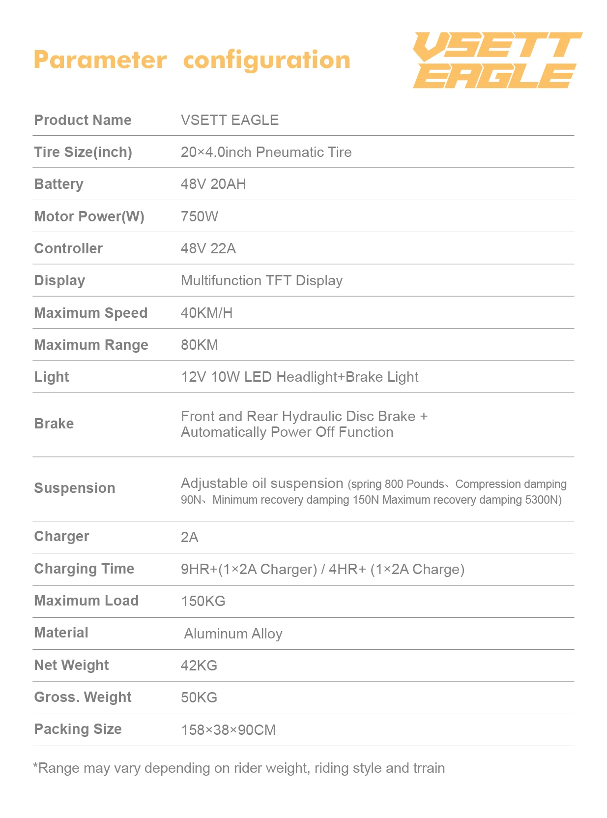 VSETT Eagle Fat Tire Electric Bike 48V 20Ah 750W