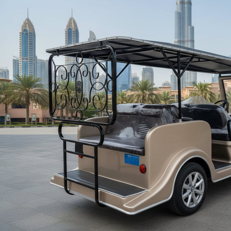 8 Seater Classic Golf Cart, the perfect blend of high-capacity group transport and elegant vintage styling. Featuring a powerful 7.5KW AC system and comfortable seating for eight, this electric vehicle is engineered for reliability, safety, and a premium guest experience on ever