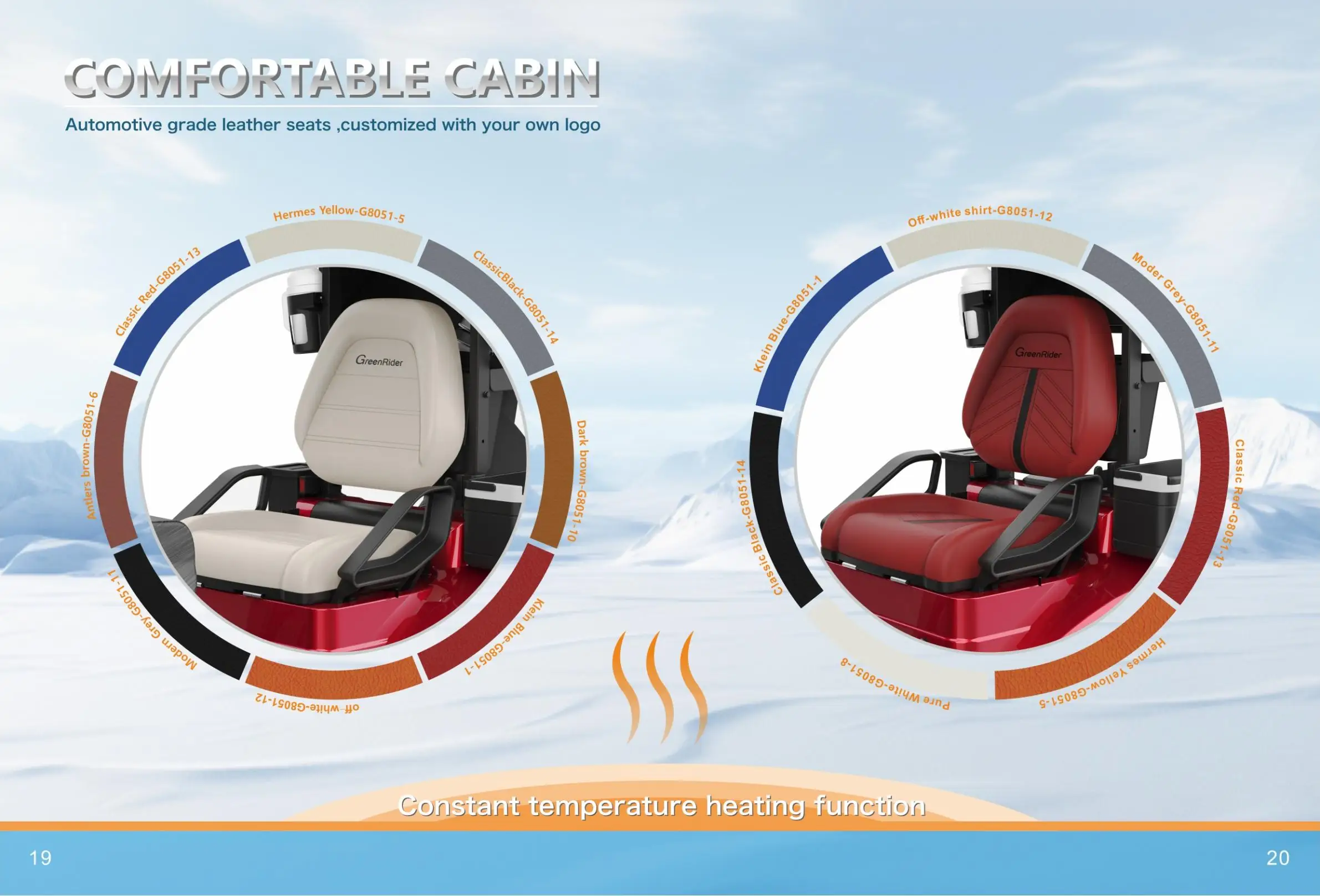 Seats Integral foam seat cushion + high-grade microfiber leather; leather embossing (stripes), LOGO embroidery