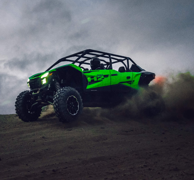 Unleash pure power with the all-new TERYX®4 H2, built for riders who demand extreme performance in the desert. Featuring Kawasaki’s legendary H2 engine, rugged suspension, and unbeatable stability, this beast is ready for dunes, trails, and hardcore off-road adventures.