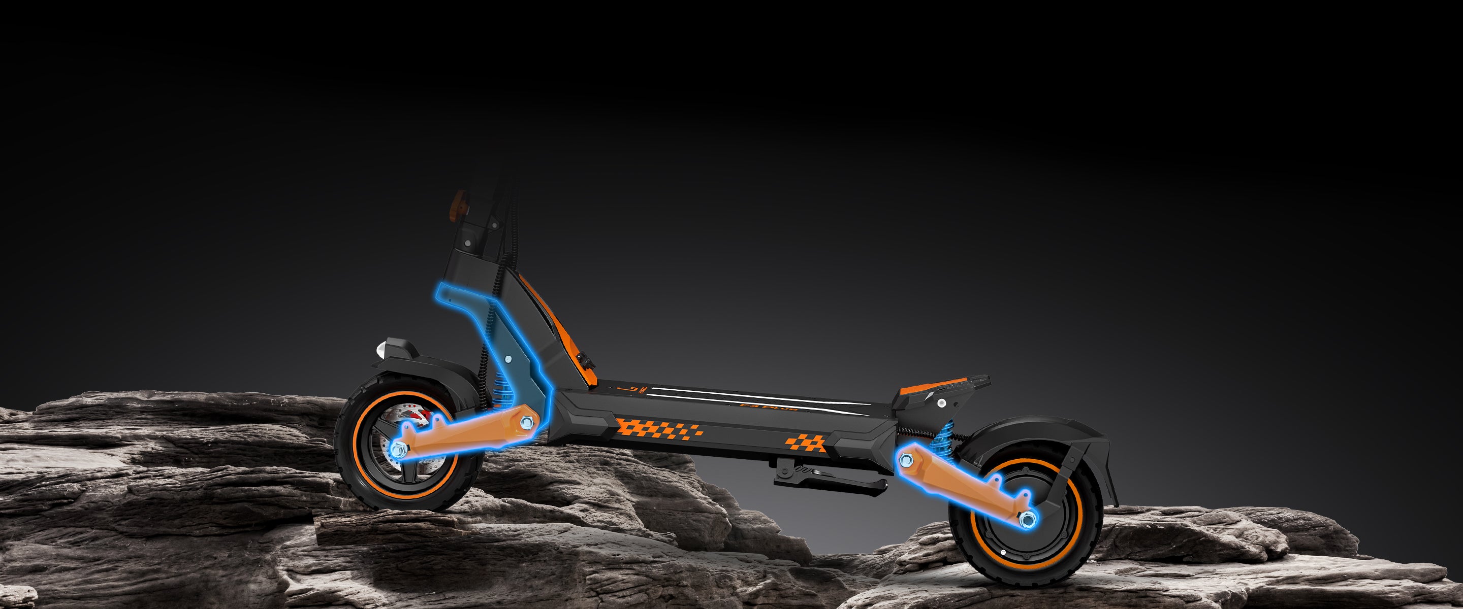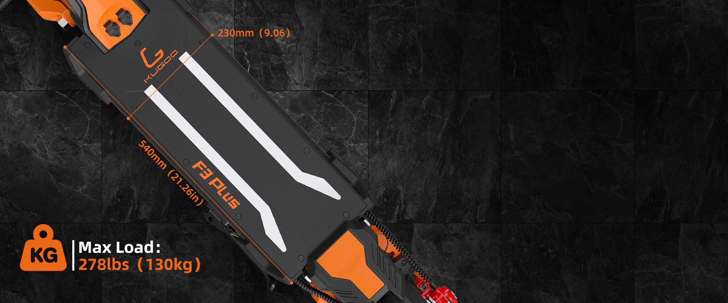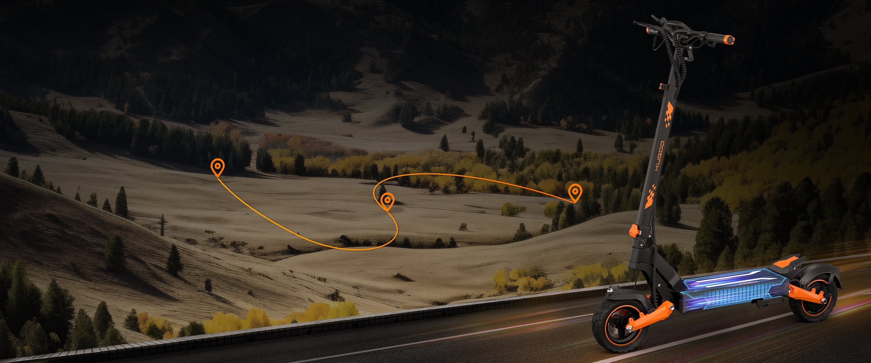 Glide through traffic and crowds with the KUGOO F3 Plus electric scooter. Its advanced swingarm suspension ensures a smooth ride even on rough roads. Enjoy added security with its dual NFC/password lock and hidden AirTag slot. Ditch the hassle and ride in style!