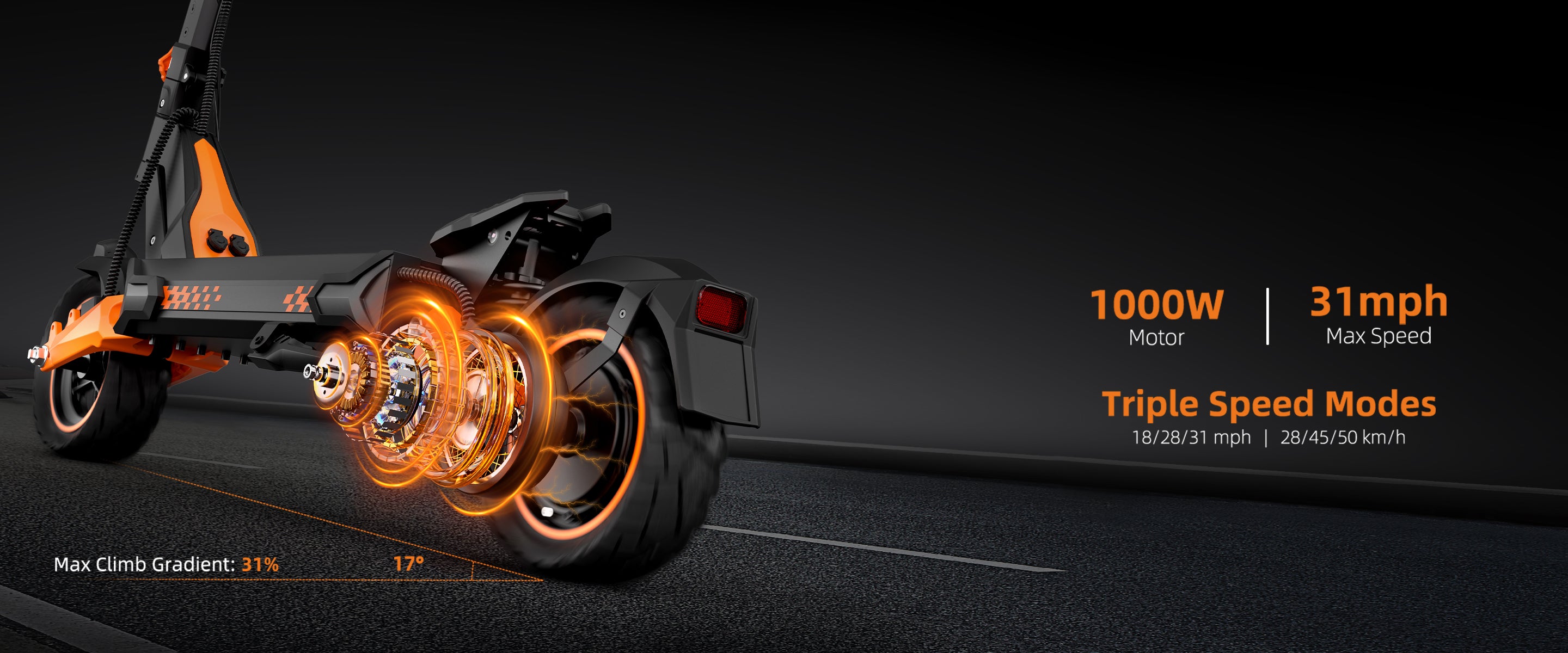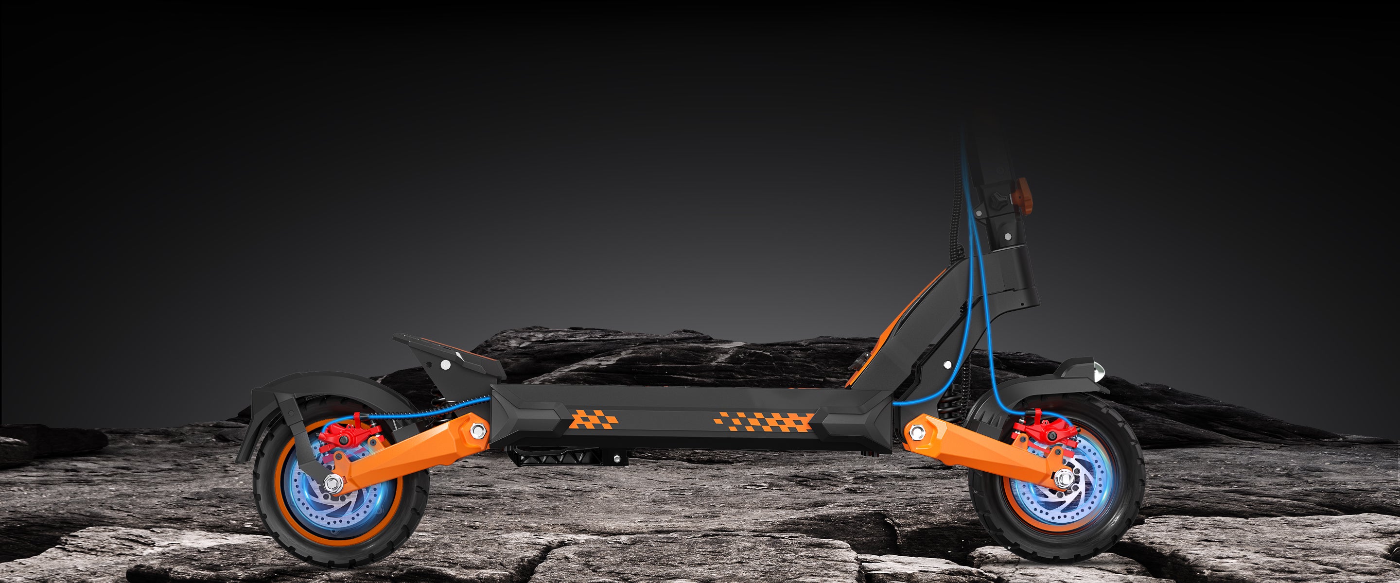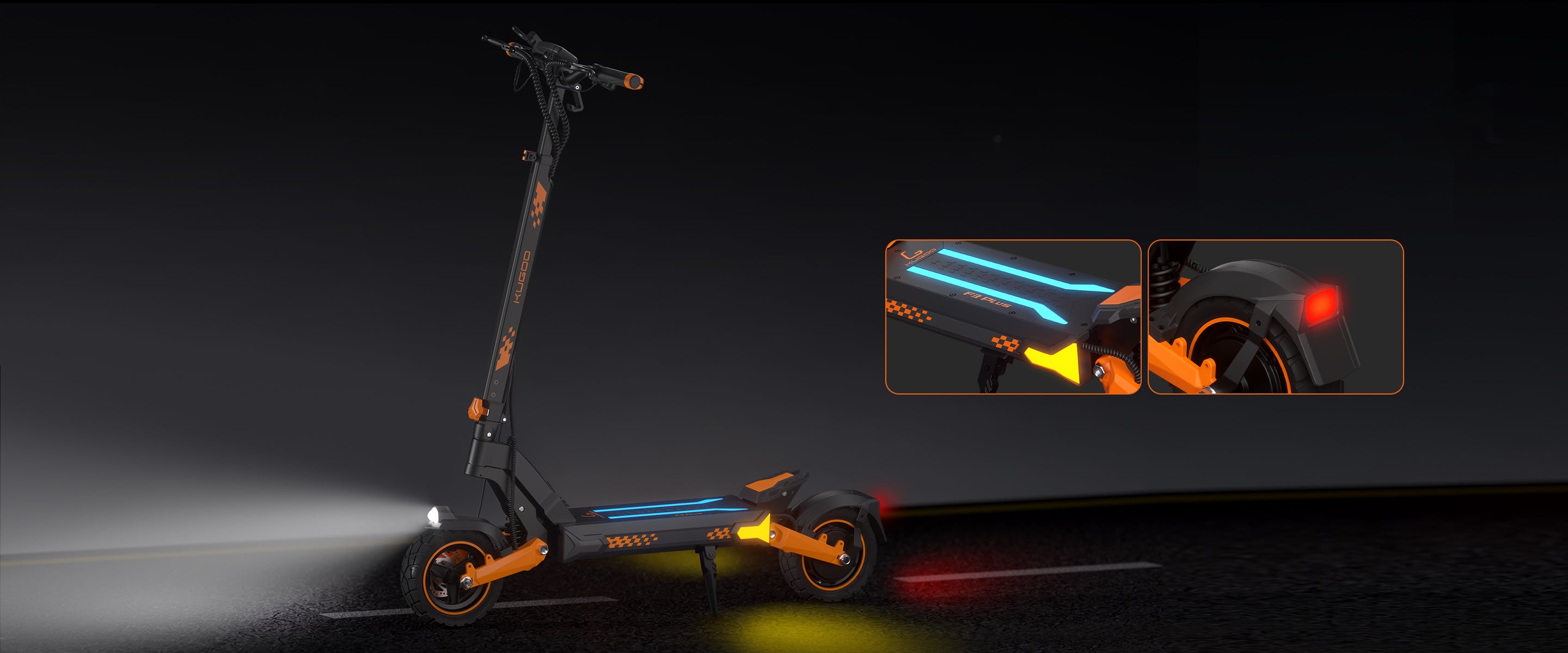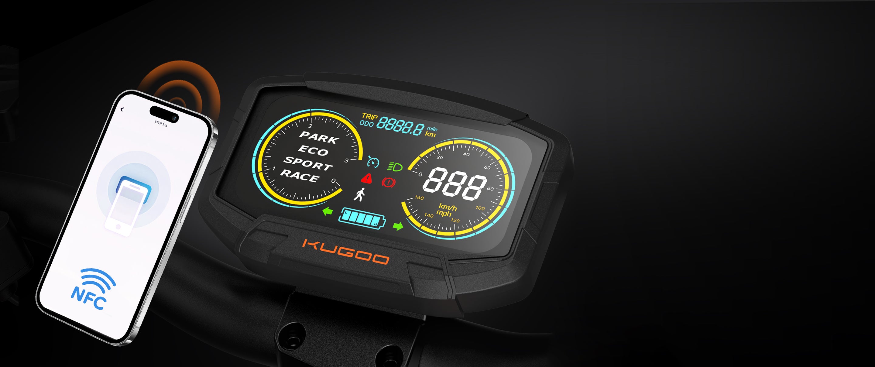 Glide through traffic and crowds with the KUGOO F3 Plus electric scooter. Its advanced swingarm suspension ensures a smooth ride even on rough roads. Enjoy added security with its dual NFC/password lock and hidden AirTag slot. Ditch the hassle and ride in style!