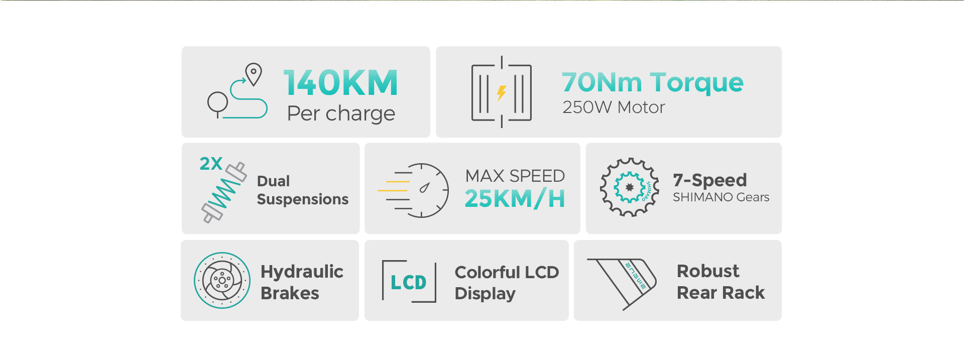 - Max Speed: 25 km/h (The actual speed will vary due to rider weight and road conditions)