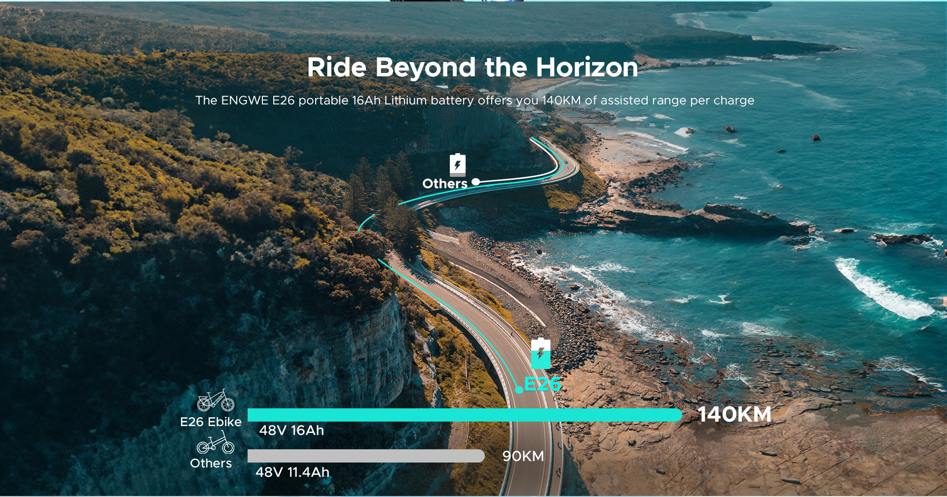 The ENGWE E26 Electric Bike powers your ride with a 250W motor, cruising up to 140km on a single charge. It's your perfect partner for urban adventures or weekend escapes, blending fun and freedom effortlessly. Get ready to zip past traffic and explore more, all while enjoying a smooth, eco-friendly journey. Ready, set, ride!