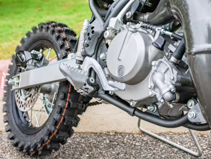 - Chassis and Suspension: The bike is built around a durable, high-tensile steel semi-double-cradle frame. It features long-travel suspension with a 33mm conventional fork in the front and a Uni-Trak rear shock, both offering adjustable rebound damping to accommodate different rider weights and skill levels.