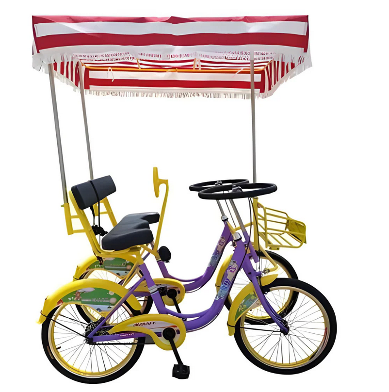 Surrey Quadricycle paddle driving Tandem Bike with two seats canopy roof