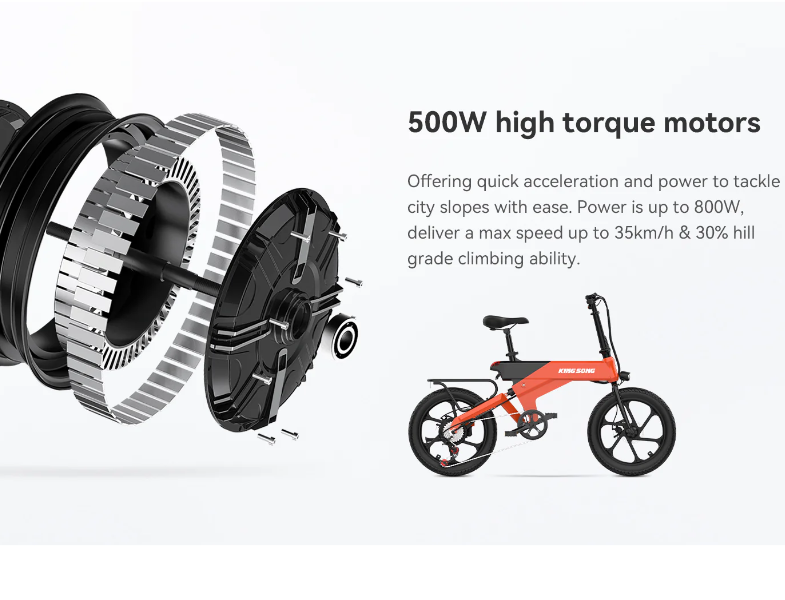 The Kingsong M3 is a smart, powerful, and ultra-comfortable electric bike built for effortless urban riding. Featuring a 500W high-torque motor (up to 800W peak), it delivers fast acceleration, climbs steep city slopes with ease, and reaches speeds of up to 35 km/h. Lightweight yet strong, its aviation-grade magnesium alloy frame ensures durability without compromise.
