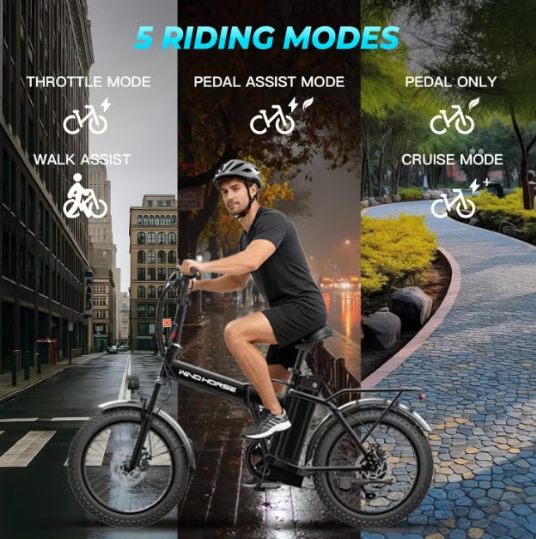Riding Modes 5 working modes (throttle, normal bike, pedal assist, push assist, and cruise control) and 3 speed modes