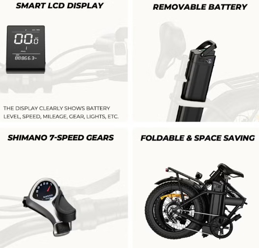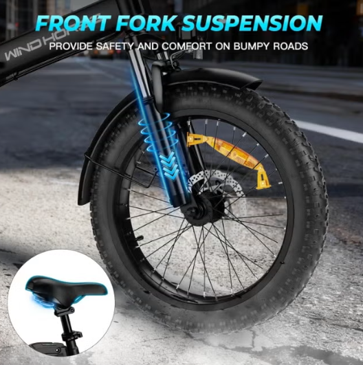 The Windhorse W4A electric bike features a 720W (983W peak) motor, a 48V 15.6Ah removable battery, 20-inch fat tires, and a foldable carbon alloy frame.