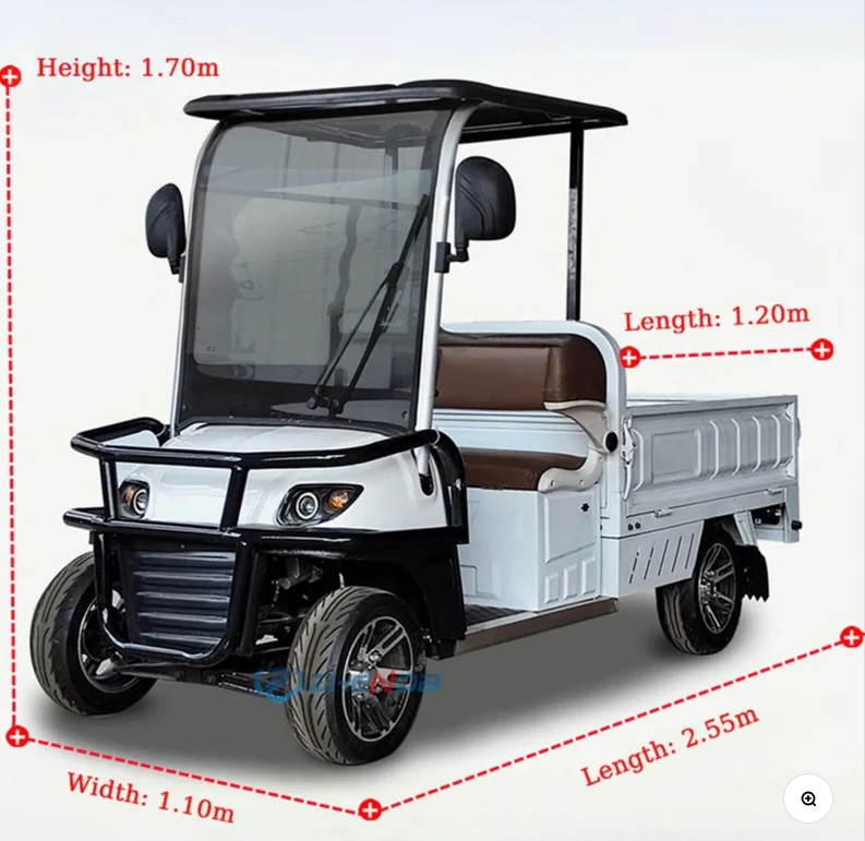The 2-Seater Electric Golf Cart with Long Cargo Utility Box is built for both comfort and utility. Designed with a compact frame and quiet electric motor, it offers smooth performance while reducing environmental impact. The spacious long rear cargo box provides ample room for transporting equipment, tools, or goods, making it ideal for resorts, golf courses, warehouses, campuses, and gated communities.