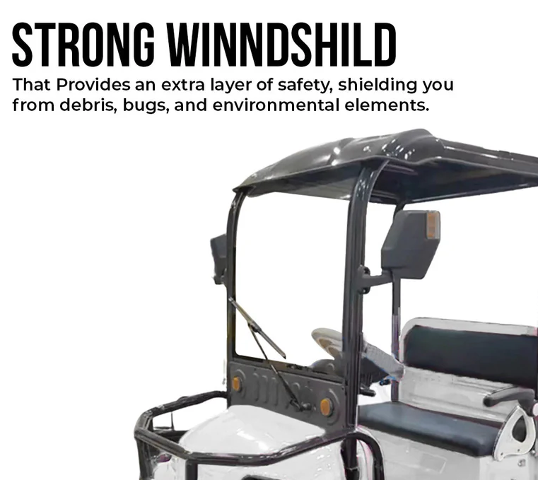 Featuring ergonomic seating for two passengers, durable suspension, and reliable braking, this cart delivers a safe and comfortable ride. Its sturdy build ensures long-lasting use, while the electric powertrain keeps operating costs low and efficiency high.