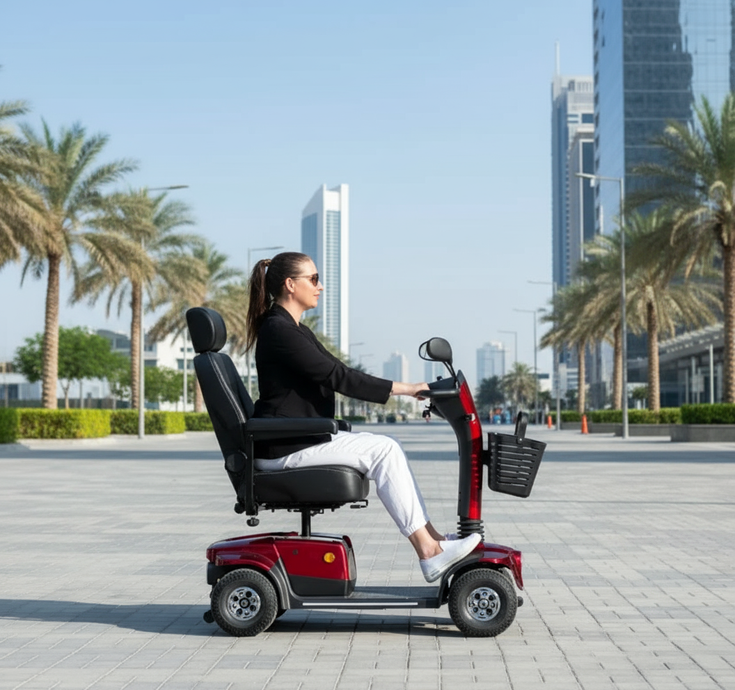 The Equinox Nomad is the best outdoor mobility scooter in UAE with a A4MPH speed, reclining seat, and smooth, all-day comfort – perfect for using your mobility scooter on pavement.
