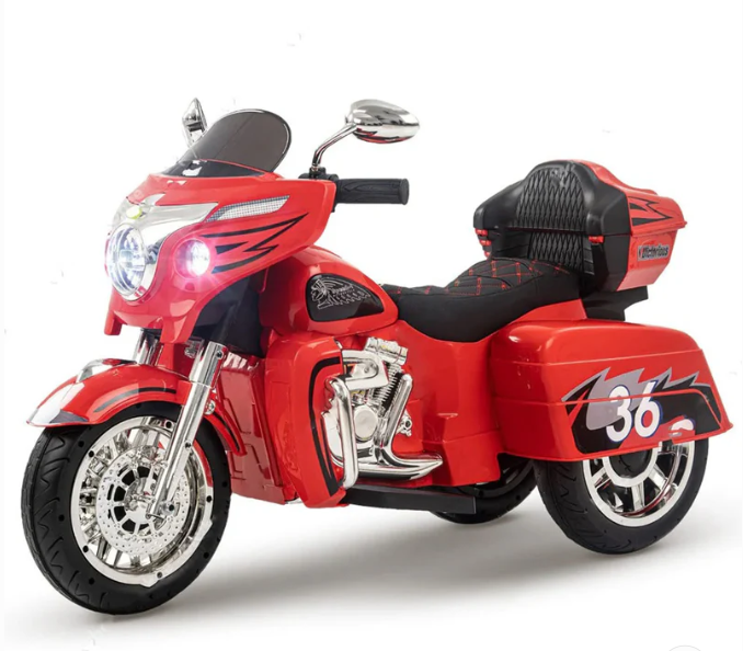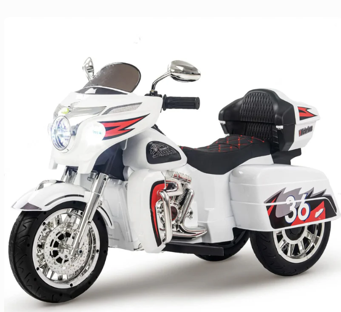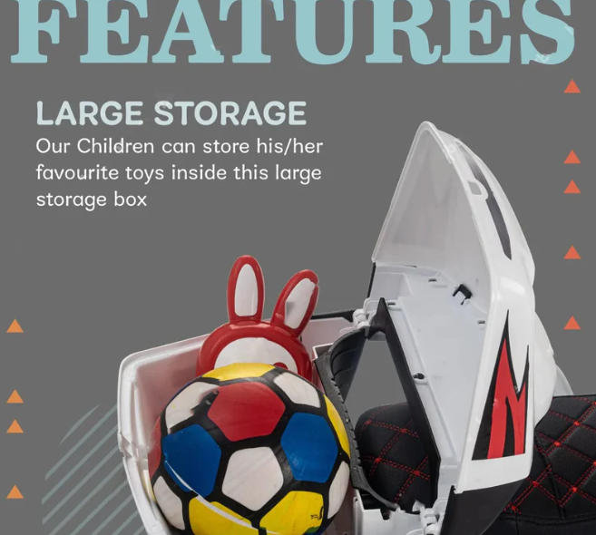 Multi-Feature Electric Bike: With inbuilt music, a working headlight, USB port, and a storage box, this kids' bike offers a range of interactive features. Press the forward/backward switch and then the accelerator to experience realistic engine sounds and a truly immersive driving experience.