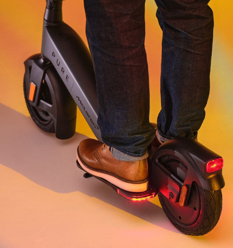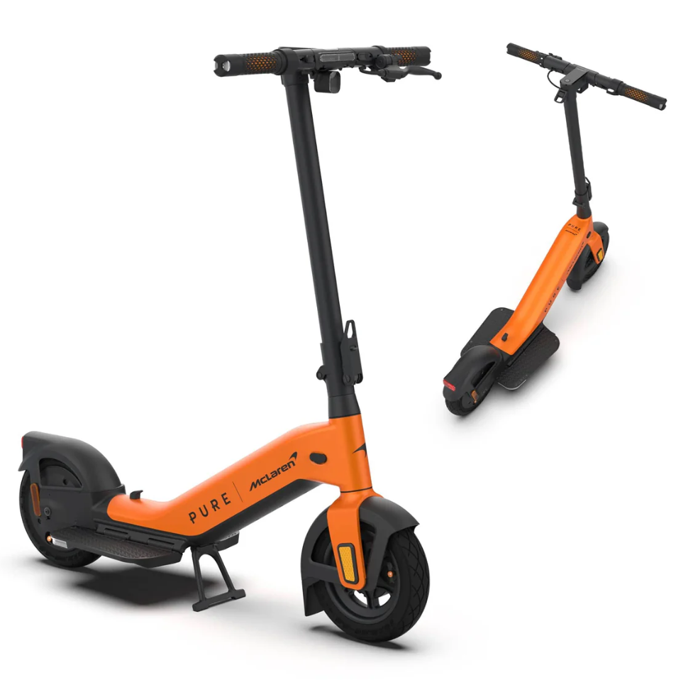 The racing spirit of McLaren, now on two wheels. Our ultimate riding position enables the rider to take a natural stance, delivering a more stable, controlled and safer ride. Folding handlebars and footpads deliver a design that is 70% more slimline than other e-scooters. Combined with a long, one-charge range of 31mi (50km) and our most powerful 900W maximum power motor that can handle the toughest of hills up to 19% gradient. Finished in McLaren’s historic orange livery or sleek Black. Precision + performance, beyond the racetrack.